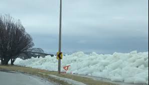 Winds pushing ice up on Niagara River shore near Peace Bridge in Niagara, Ontario Town of Fort Erie. Niagara Parks Police image