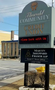 It is interesting to see a sign in front of the Thorold Credit union across the corner from RBC that reads “Just because your bank is leaving Thorold, doesn’t mean you have to, come bank with us.”