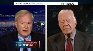 MSNBC’S Hardball host Chris Matthews interviewing Jimmy Carter during one of Matthew’s weeknight segments.