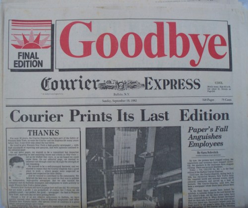 A sad day in the history of newspapers in this area of the world. The last edition of a newspaper read on both sides of the border, The Buffalo Courier Express says goodbye in 1982 – one of the earlier casualties in an era where the printed word has taken a back seat to other media. Don’t let it happen again. Support newspapers