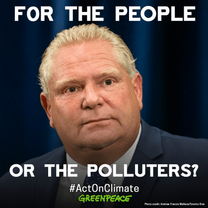 Ontario Premier Doug Ford slamming four-to-five cent per litre price on carbon pollution – what Ford and his cronies call a  “carbon tax” – that the federal government has put on gasoline.  as one way to address the climate emergency peoples around the globe are facing.