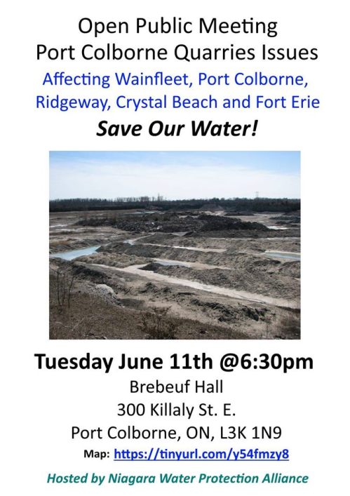 Niagara At Large is posting the following notice from a Port Colborne area citizens group about a public meeting scheduled for this Tuesday, June 11th starting at 6:30 p.m. at the Brebeuf Hall on 300 Killaly St., East in Port Colborne.