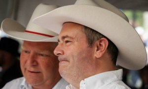 Ontario Premier Doug Ford (left) and Alberta Premier Jason Kenney, in 19th century cowboy costumes at the Calgary Stampede, with their tar pipe dreams and hopes of seeing their pal Andrew Scheer elected Canadian prime minister in October