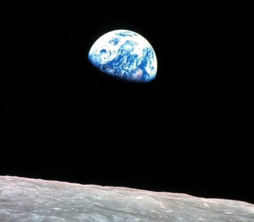 One of the iconic phtos of our earth from an Apollo space ship orbiting the moon (but not yet landing) in late 1968.