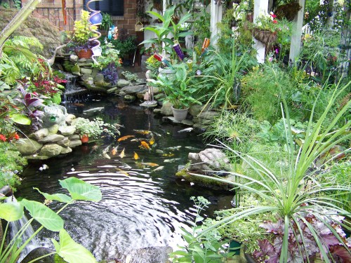 An award-winning fish pond and backyard garden behind a grand old Victorian home on Delavan Avenue in Buffalo. File photo by Doug Draper
