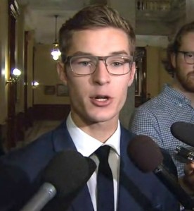 during this August 8th’s Niagara visit, Ontario Premier Doug Ford called Niagara West MPP Sam Oosterhoff (shown here at Queen’s Park earlier this year) as “a champion” for the region.