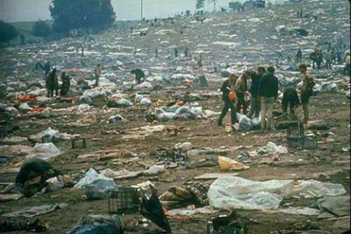 When the festival ended, and the throngs of mostly baby boomers left Yasgur’s farm, the verdant fields they found when they arrived were covered in mud and garbage, and it seems from what can be viewed on film and photographs, that only a handful of stragglers stuck around to clean the garbage up.