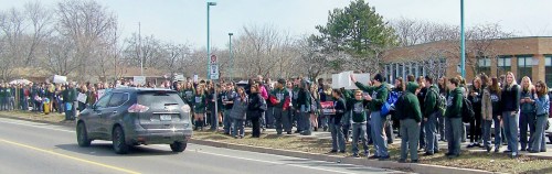 Earlier this year, in front of this high school in St. Catharines and many others across the province, students left class for an afternoon to protest Ford’s planned cuts to education. File photo by Doug Draper