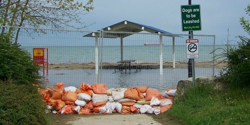 For the second time in three years, walls of sandbags were used to protect St. Catharines’ popular Lakeside Beach and park, and the historic carousel in it from near record-high waters in the lower Great Lakes. File photo by Doug Draper