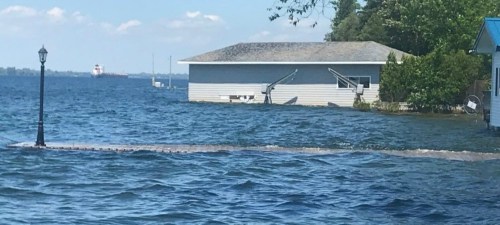 Flooding along the American shores of Lake Erie. Scenes like this on both sides of the border have become more commonplace.in recent years.