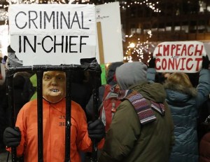 American citizens at one of numerous impeachment rallies held in cities and towns across the United States this past December 17th, on the eve of impeachment voting taking place on the floor of the U.S. Congress
