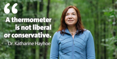 “The reality is a thermometer is not conservative or liberal and it’s certainly not NDP or Green either. It doesn’t give us a different answer depending on how we vote. The climate system is changing. Humans are responsible. The impacts are increasingly serious and even dangerous, no matter who we vote for or where we fall in the political spectrum.” – Scientist Katherine Hayhoe, Director of the Climate Science Centre at Texas Tech University