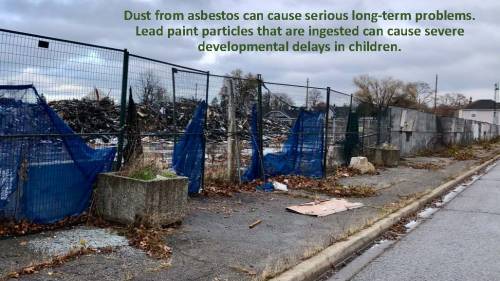 In its current state, the site is a safety and health hazard. Broken fences and deteriorating sheets of plywood have allowed people to shelter in unsafe structures, exposing them and the surrounding neighbourhood to potential health hazards from mold and toxic materials such as asbestos.