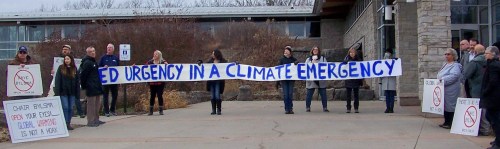 The group, members of whom held a large banner at the front entrance to the Ball’s Falls Conservation Centre this Saturday reading; “We Need Urgency In A Climate Emergency,” concluded the letter by stressing that time is running out to do what needs to be done to address the climate crisis.