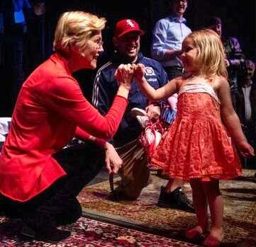 Elizabeth Warren greets one of countless little girls on campaign trail over the past year. “My name is Elizabeth and I’m running for president, because that’s what girls do,” she would tell them.