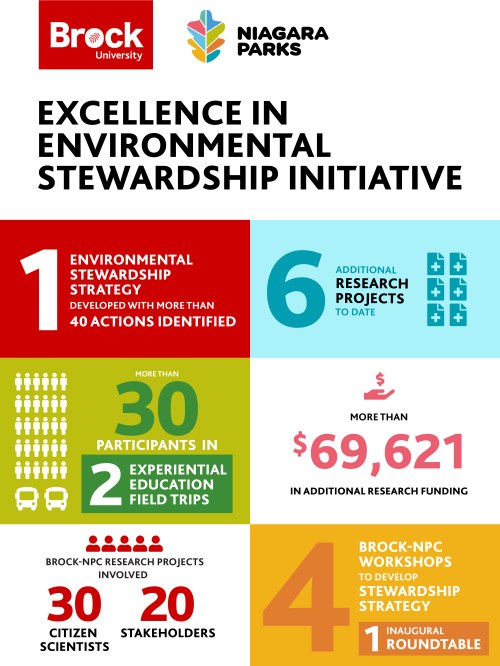 Known as the Excellence in Environmental Stewardship Initiative, the partnership has allowed Niagara Parks to access Brock researchers to further improve its sustainability and environmental stewardship goals, while giving Brock faculty and students an iconic landscape to actively engage in sustainability science.