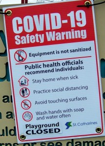 Safety Warning signs like this will remain posted at playgrounds and a host of other places across Ontario for at least a little while longer