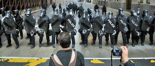 Then, while you are sitting there, under the shade of a tree, listening to a series of speakers talking about health care and environmental issues, and better wages and jobs for working people, an army of heavily armed police, looking like Darth Vaders, descend upon you and others on those lawns.