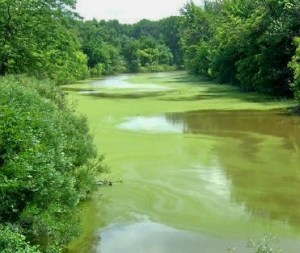 One of countless tributaries to Lake Erie, choking with algae.