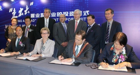 Few Niagara politicians have championed the GR project in Thundering Waters Forest as much as Niagara Falls, Ontario Mayor Jim Diodati. Here he is, in the front row, second from right, with now former Ontario Liberal Premier Kathleen Wynne, signing a Memorandum of Understanding for the project with GR representatives, during a surprise trip to Beijing, China in 2015