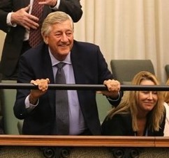 Former Ontario premier Mike Harris, an old friend of the current premier, Doug Ford, shows his joy in the gallery at Queen’s Park in 2018 after the Ford government comes to power. Mike Harris is the board chair for Chartweel Retirement Residences, a large, private, for-profit chain of long-term care homes in Ontario.