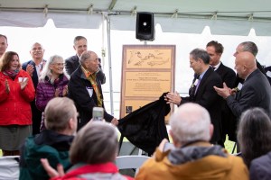An event held near Niagara Falls, New York in October, 2019, celebrating the American side of the Niagara River as an internationally significant wetland. On the left side of the photo is Jocelyn Baker, who has been heading up a team of volunteers for the past seven years in Niagara, Ontario, to get a similar designation for the Canadian side of the river.