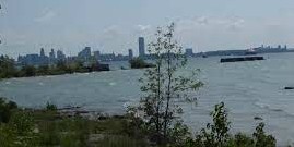The Waverly Woods area from the sky with Lake Erie along side and the skyline of Buffalo, New York in the background