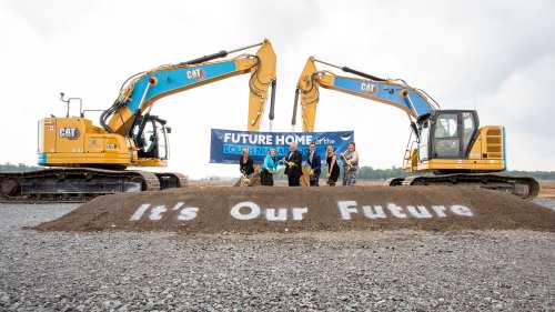 Lynn Guerriero, Niagara Health President and CEO, Sylvia Jones, Deputy Premier and Minister of Health, Premier Doug Ford, Sam Oosterhoff, Niagara West MPP, Kinga Surma, Minister of Infrastructure, and Andrea Scott, Niagara Health Foundation President and CEO gathered in July 2023 to break ground on the new South Niagara hospital in Niagara Falls. The hospital is expected to open in summer 2028.