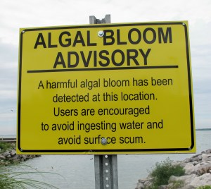 Toxic algae washing up along Lake Erie shores. Untreated runoff of contamination from farmlands and urban areas are major sources