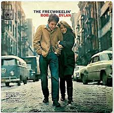 The cover of the now-classic 1963 album, ‘The Freewheelin’ Dylan’, showing Bob Dylan and his then girlfriend Suze Rotolo walking down one of the snowy streets of Greenwich Village, New York.