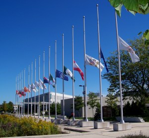 The flags for the Region and all 12 Niagara municipalities flying at half mast this past week in honour of Jim Bradley