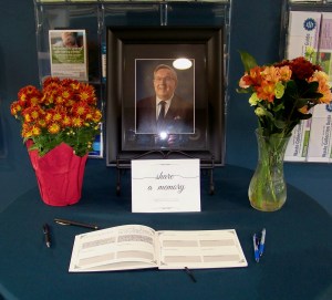 A booki you can sign and share a memory of Jim Bradley in, inside the east entrance to the Niagara Regional Headquarters located of Schmon Parkway in Thorold.