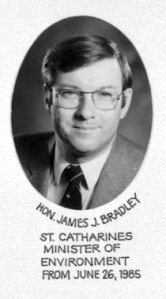 Five years later, Jim Bradley was serving as Ontario’s Minister of Environment for then Premier David Peterson’s Liberal government and he was the one hosting the opening of a new water line from the Niagara municipality of Grimsby to the West Lincoln town of Smithville where the local well water was in danger of being poisoned with PCBs from a nearby toxic waste site.
