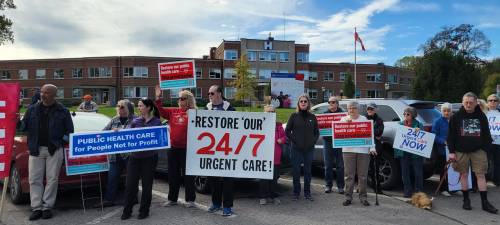 A recent citizens’ demonstration in front of what little remains of a fully functioning hospital in the Niagara municipality of Port Colborne