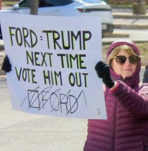 When I got out of my car to talk to people participating in what organizers from citizens coalitions across Niagara plainly called the “Rally Against The Ford Government”, the relentless honking of horns of support from motorists driving by was so loud that we could often hardly hear ourselves speak.