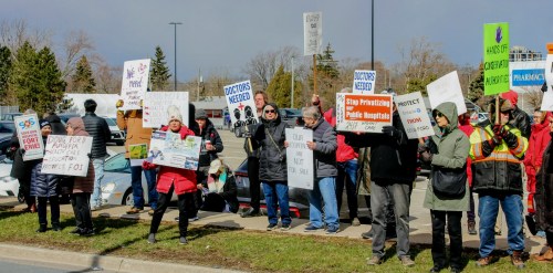 More than 300 citizens from across our Niagara Region – and that is likely a very conservative estimate – rallied along Glenridge Avenue, in front of the Pen Centre shopping mall in St. Catharines this past Saturday, March 28th against what Ontario’s Ford government has been doing and is continuing to do to gut our public health care and education services, along with hard-fought measures to protect our environment and to deconstruct so many other programs and institutions that generations of Ontarians put in place to make our communities healthier, freer, more democratic to live in.