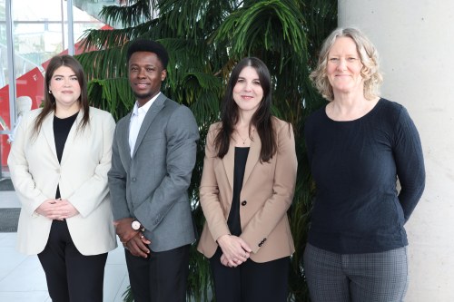 Researchers from Brock’s Department of Child and Youth Studies launched a new report in collaboration with YWCA Niagara Region detailing experiences of homelessness for Niagara’s youngest residents. From left are PhD students Erika Alegria and Frederick Oppong with Professors Christine Tardif-Williams and Rebecca Raby
