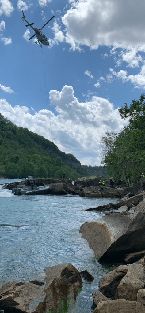 Rescue in progress over the churning waters of the Lower Niagara River. Photo courtesy of Niagara Parks Police