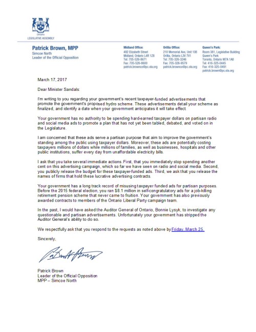 Queen’s Park, Toronto – The NDP is filing requests under Freedom of Information laws to find out just how much public money Premier Kathleen Wynne is spending on advertisements in defense of sky-high hydro bills and the multi-billion-dollar borrowing scheme she still hasn’t released.